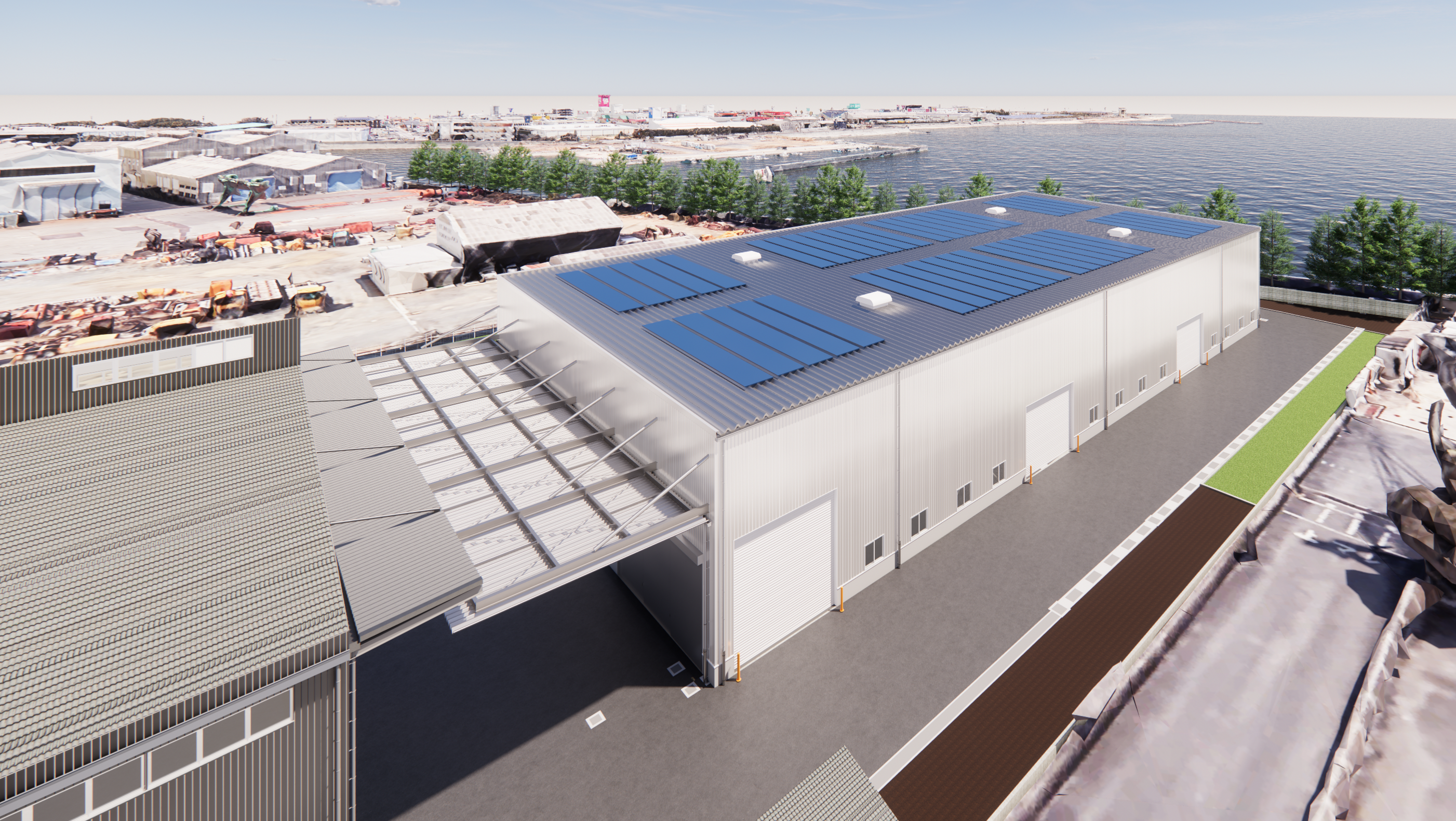 今回建設する第二工場は、延べ床面積2,208平方メートルを有し、第一工場の一部設備を移設、レイアウトを再編・整流化することで、より直線的で効率的なライン構成を実現します。これにより、最大70メートルを超える大型産業機器の組み立てが可能となります。